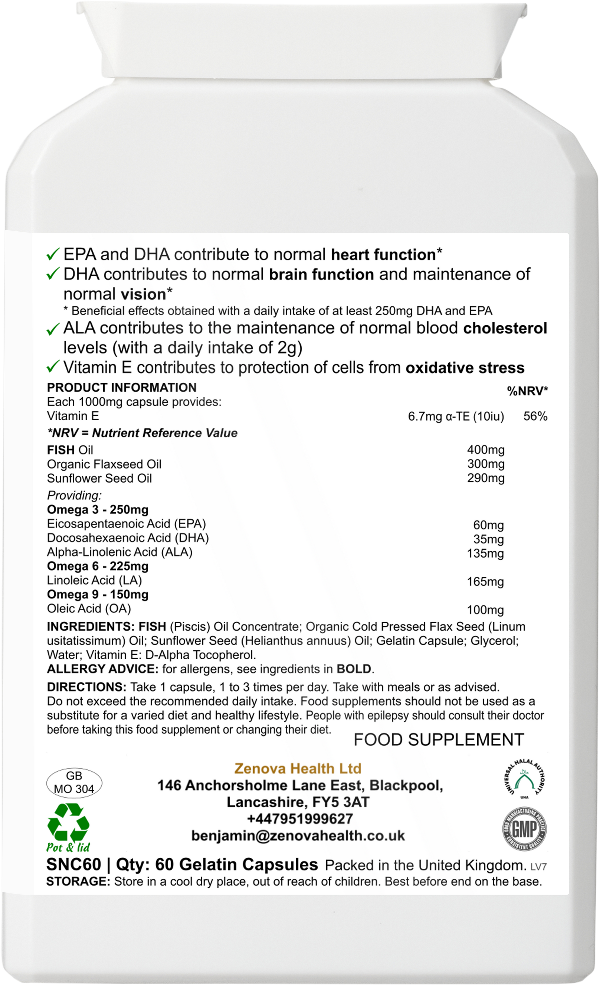 ❤️ Supports Heart & Circulation – Omega-3 (EPA & DHA) contributes to normal heart function and cholesterol balance.